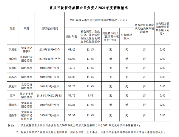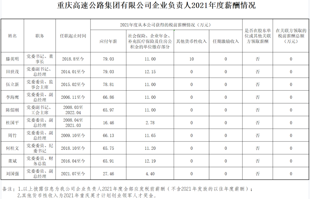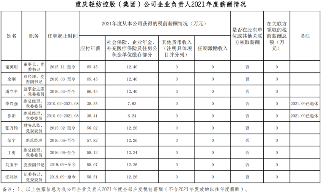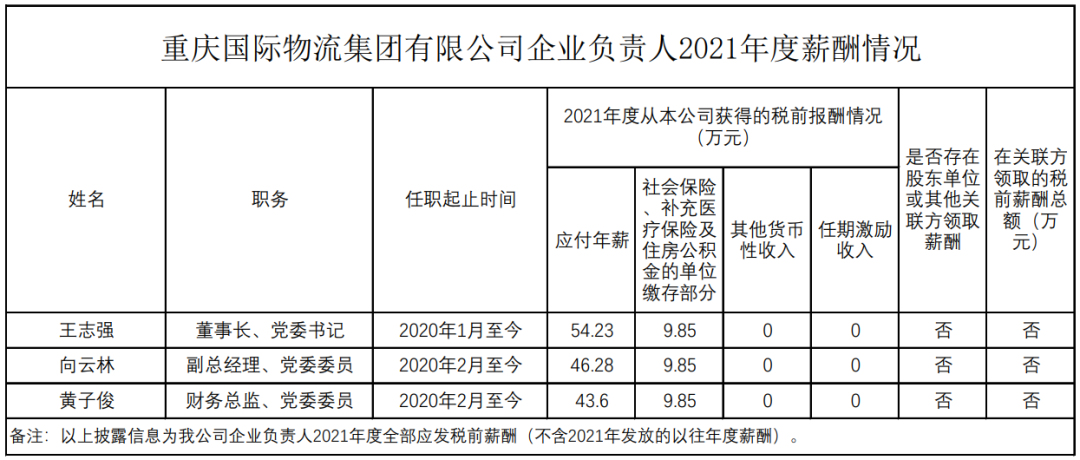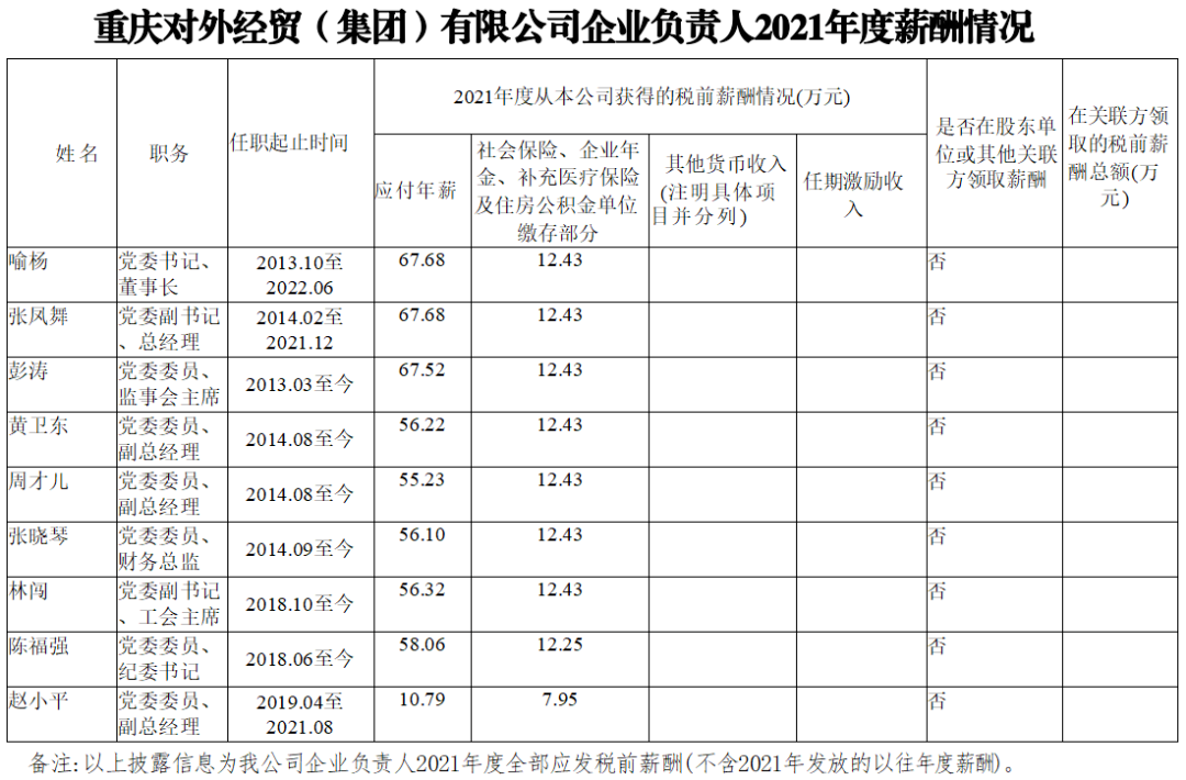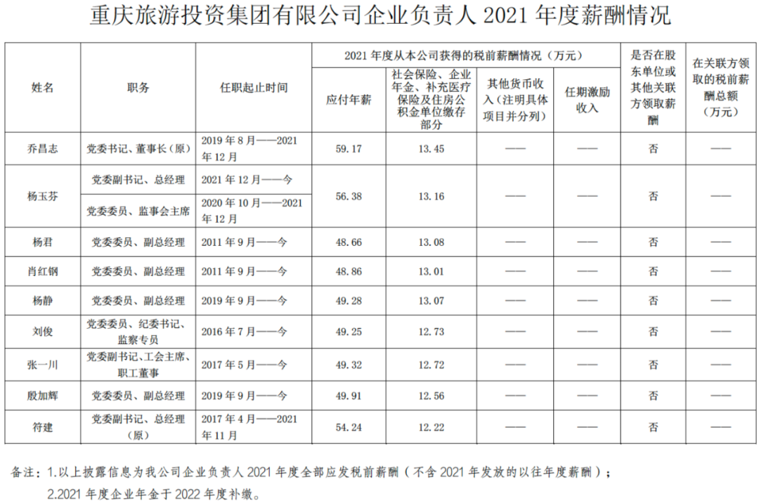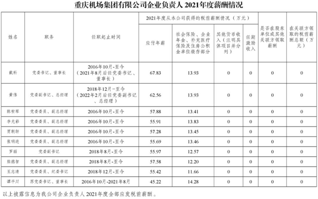 以下为重庆市33家市属国有重点企业负责人2021年度薪酬具体披露情况: