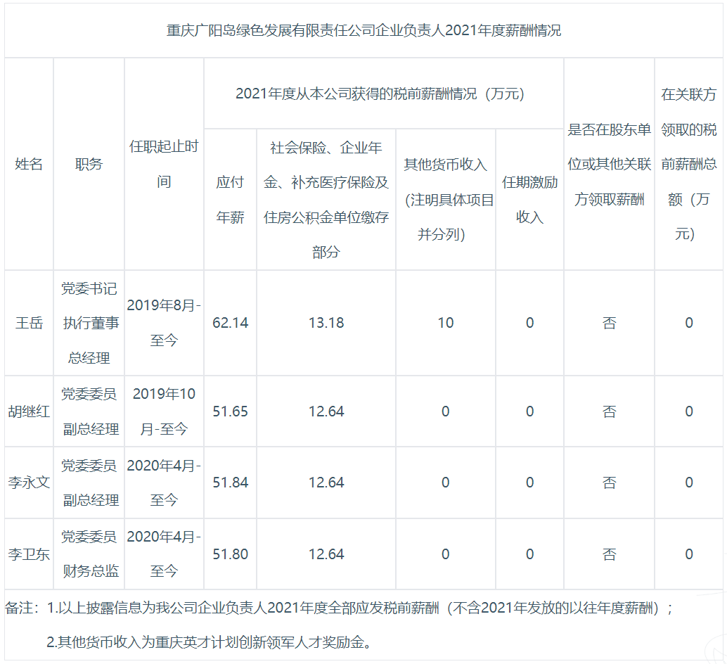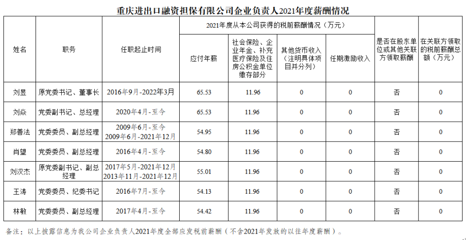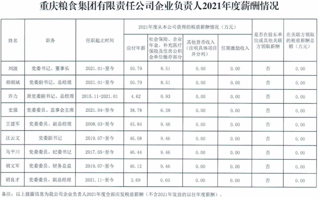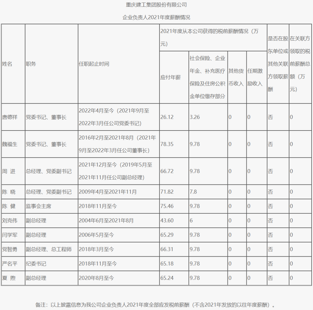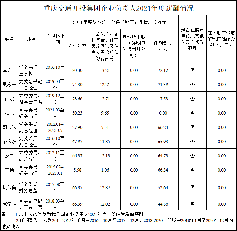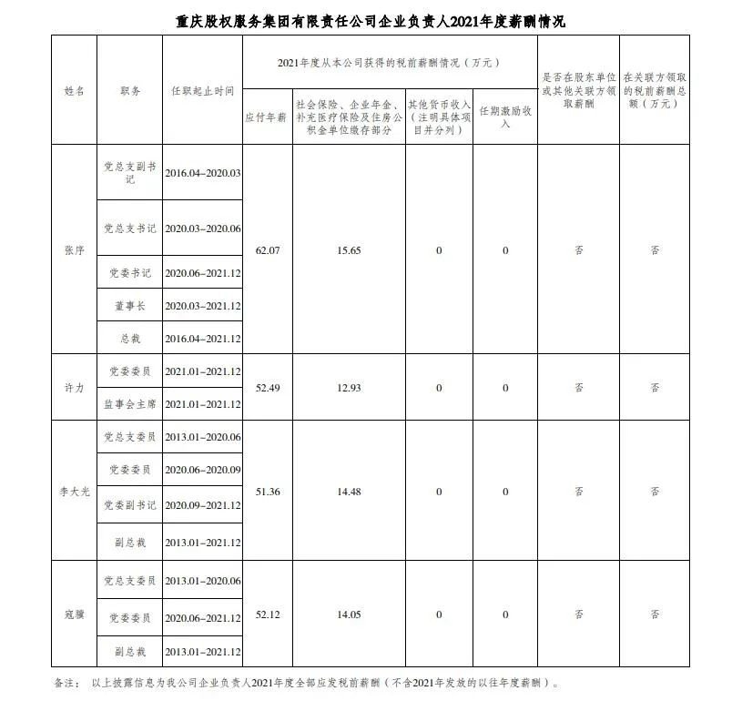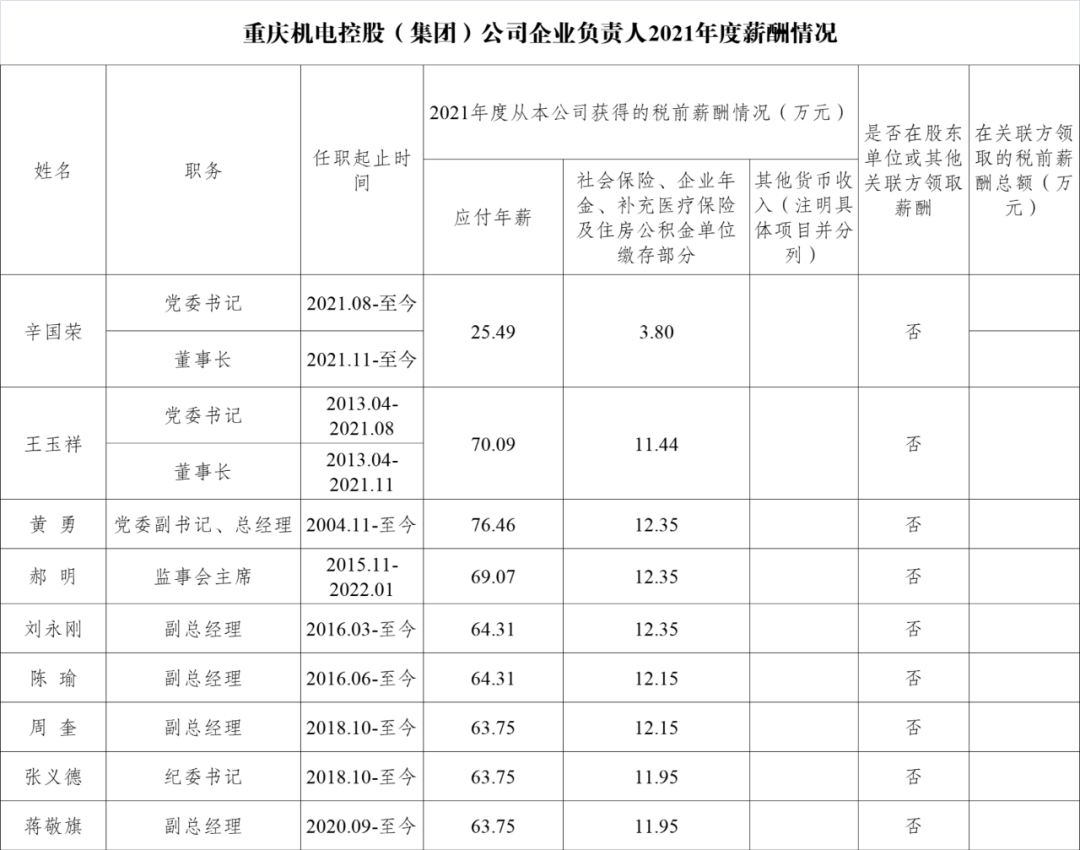 以下为重庆市33家市属国有重点企业负责人2021年度薪酬具体披露情况: