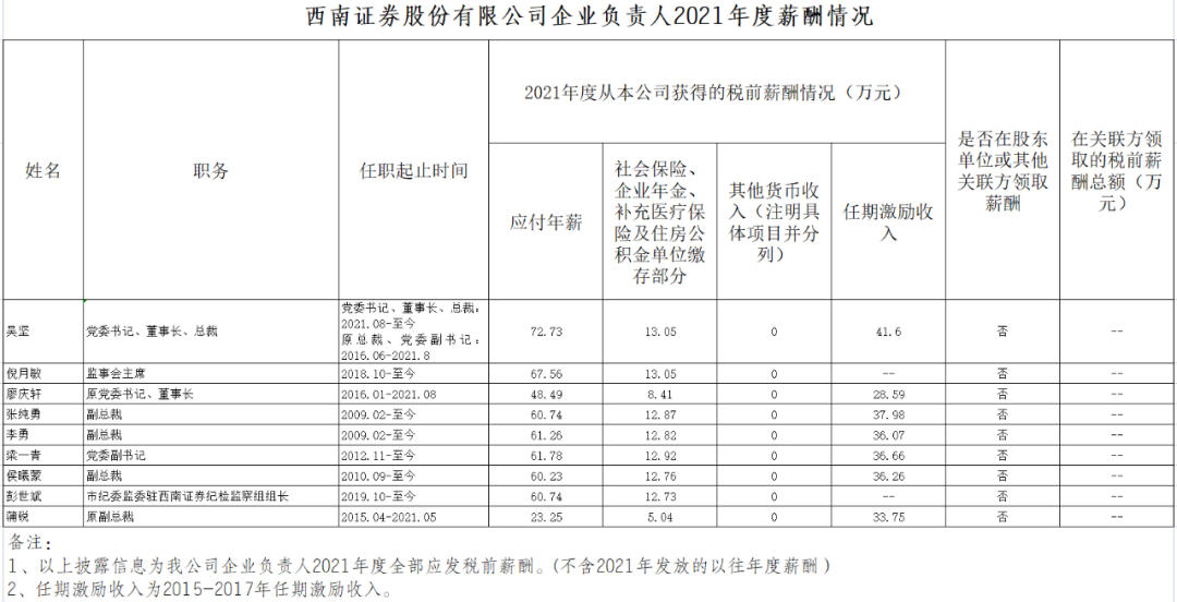 党委书记、董事长、总裁吴坚 72.73万元