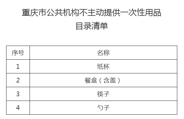 6月15日,重庆市城市管理局发布通知,《重庆市一次性用品目录清单管理办法》(后简称《办法》)已于近日印发,并将于8月1日起正式施行。