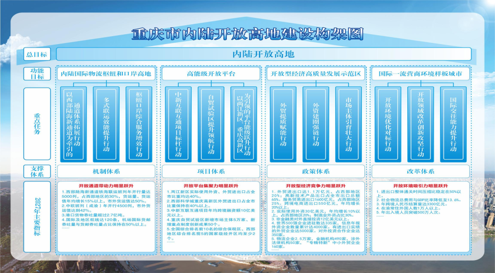 重庆市内陆开放高地建设构架图发布 确定1个总目标、4大功能目标、12项重点任务