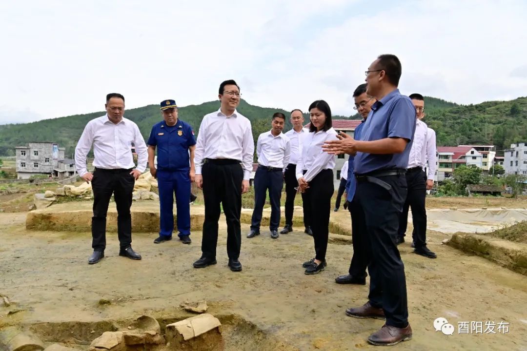 商贸强镇,毓秀李溪。李溪历来商贾云集,文化底蕴厚重,境内官坝村土地平阔、阡陌相通,为南宋建炎3年(1129年)设置酉阳寨治所在地,最初设置酉阳州也选址于此。祁美文走进官坝村遗址考古发掘现场,与市文物考古研究院专家深入交谈,对考古工作者的敬业奉献精神致以崇高敬意。祁美文说,历史长河中的酉阳,土家文化、土司文化、农耕文化、红色文化交相辉映,文化是乡村振兴的灵魂,文化的根和魂就是文物。