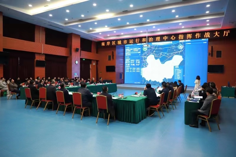 许洪斌强调,城市运行和治理中心建设在重庆城市治理中具有重要实践意义,是数字重庆建设最具辨识度的重要成果。要进一步深化思想认识,围绕数字重庆“1361”整体构架,紧盯“一年形成重点能力”目标,坚持面上推进、点上突破,加快形成一批数字重庆实用实战成果。要积极谋划“一件事”场景,坚持承接市上试点与区内自主谋划两手抓,聚焦全局牵引、共性高频、急难愁盼的重点难点卡点,切实做好发展、服务、治理“一件事”谋划工作,提炼总结推广基层最佳实践,做到一地创新、全域推广。要加快建成“实战枢纽”,主动做好三级应用贯通承接和运行反馈,加快理顺派单、协调、处置、监督的管理流程,统筹做好数据归集展示、应用集成和业务贯通,不断强化精准感知、科学分析、高效执行等实战能力。要创新探索工作机制,充分调动市场主体积极性,集约建设基础设施、数据资源、应用支撑体系,联动推进区级中心与镇街中心建设,加快实现系统集成、上下贯通、高效互动,凝聚推动超大城市治理体系和治理能力现代化的强大合力。