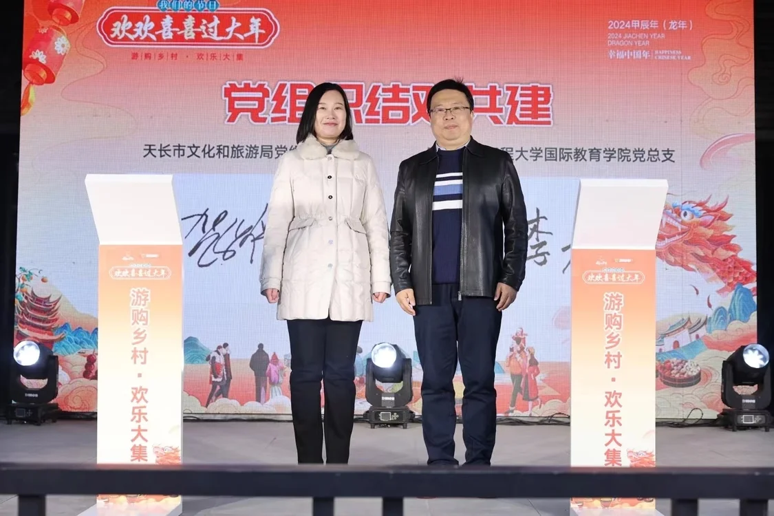 此外,活动还邀请到南京信息工程大学国际教育学院的老师和留学生们前来参加活动,体验中国特色民俗文化,品尝天长特色美食,感受喜庆祥和的节日氛围。活动现场,双方基于各自领域积累的丰富经验和资源,为进一步深化交流合作,共同开拓国内国际文旅资源,达成了党组织友好共建协议。