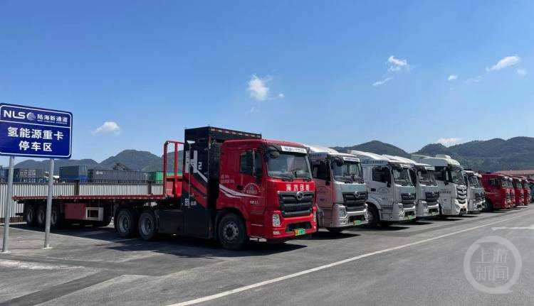 近日,陆海新通道联合渝鸿创能投入10辆49吨氢燃料电池重卡,开展陆海新通道重庆无水港和中铁联集重庆中心站之间的短驳运输,年减碳量近500吨。