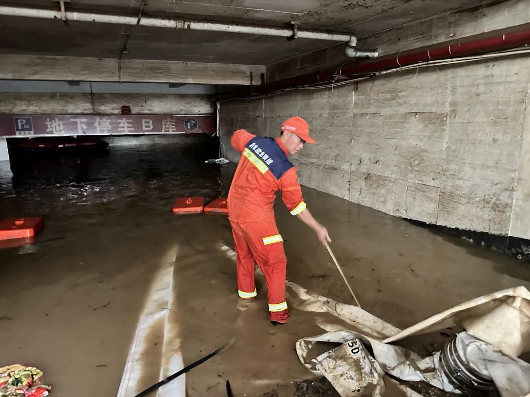 目前,总队指战员正在新的排涝任务点继续执行抢险任务。