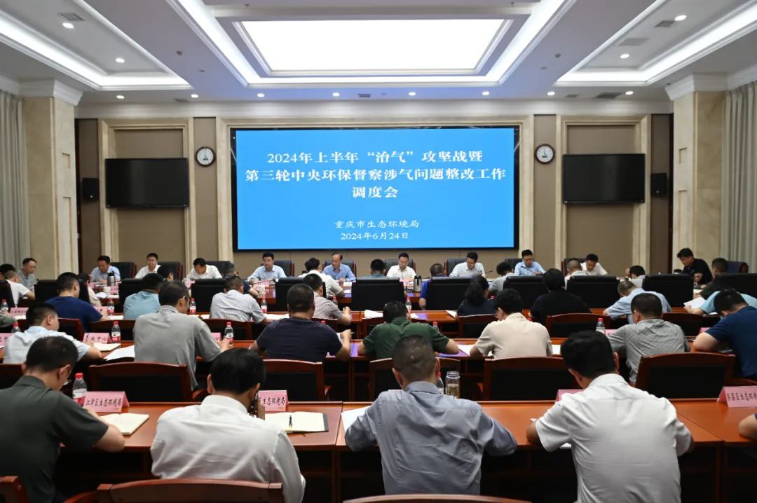 6月24日,重庆市召开2024年上半年“治气”攻坚暨第三轮中央环保督察涉气问题整改工作调度会,总结上半年的工作进展,推动中央生态环保督察涉气问题整改,统筹安排下一阶段的工作任务,打好全域“治气”攻坚战。重庆市生态环境局局长余国东出席会议并讲话,重庆市生态环境局党组成员、副局长向霆主持会议。