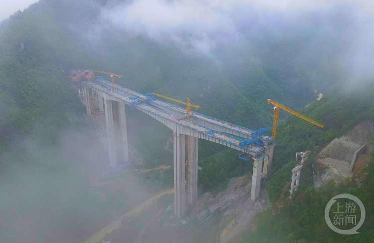 位于巫溪县凤凰镇的凤凰特大桥由中交第一航务工程局有限公司承建。凤凰特大桥横跨熊家河,起点与任家湾隧道出口相连,终点与凤凰隧道进口相连,全长493米,为96+180+96米连续刚构结构。凤凰特大桥主墩高达114米,相当于38层楼高,是巫云开高速全线地势最险峻、建设难度最高的桥梁,也是巫溪县境内在建墩身最高的桥梁。