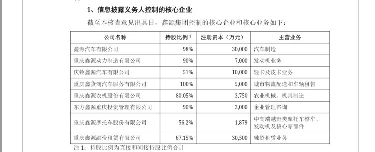 据介绍,东方鑫源集团成立于2007年11月9日,注册地在重庆市九龙坡区含谷镇鑫源路8号,注册资本1亿元,法定代表人龚大兴,股东为龚大兴(70%)、尹晓梅(30%),主营业务包括汽车、高端摩托车、农业机械、通用机械制造、智慧出行、融资租赁等。