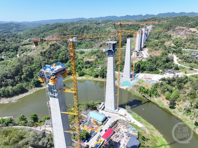 相当于30多层楼高 渝万高铁五步河双线特大桥连续梁主墩完工