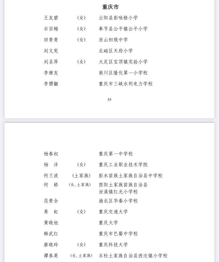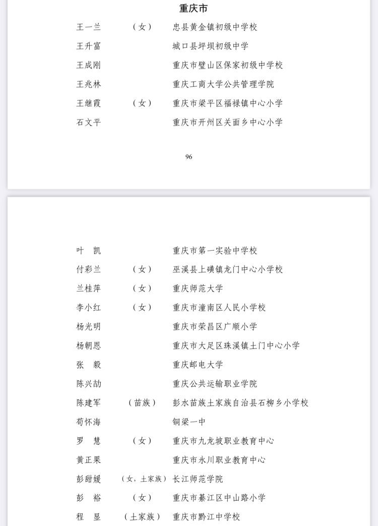 教育部公示拟表彰名单!重庆16所学校、42名老师入选