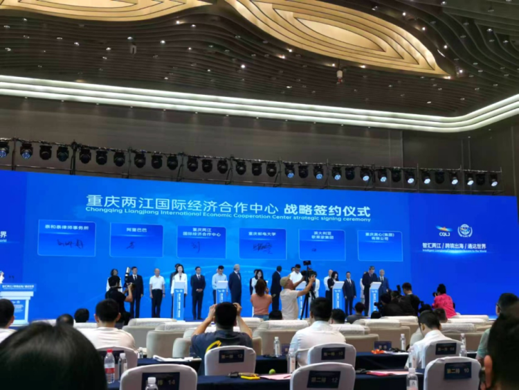 现场,相关企业、高校代表与重庆两江国际经济合作中心进行战略合作签约。