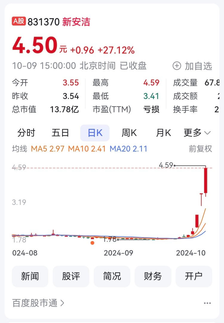 新安洁作为北交所低价股,受资金青睐。