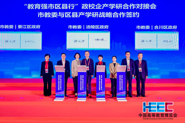 作为第62届中国高等教育博览会重要内容之一,11月16日,“教育强市区县行”政校企产学研合作对接会在重庆国际博览中心举行。市教委与涪陵、合川、綦江3个区县签订产学研战略合作协议,相关高校与区县、企业签订了一揽子合作协议,进一步促进创新要素与区域实体经济深度融合。