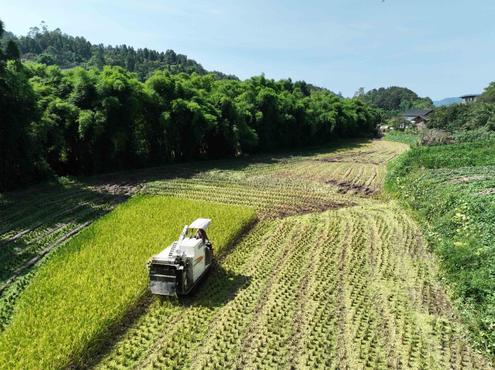 ▲巴南区东温泉镇小桥村,村民驾驶收割机在高标准农田里抢收水稻。 (摄于2024年8月7日)通讯员 李攀 彭怡 摄