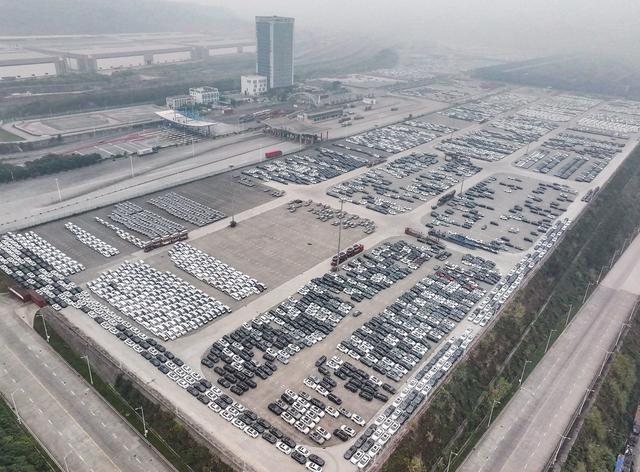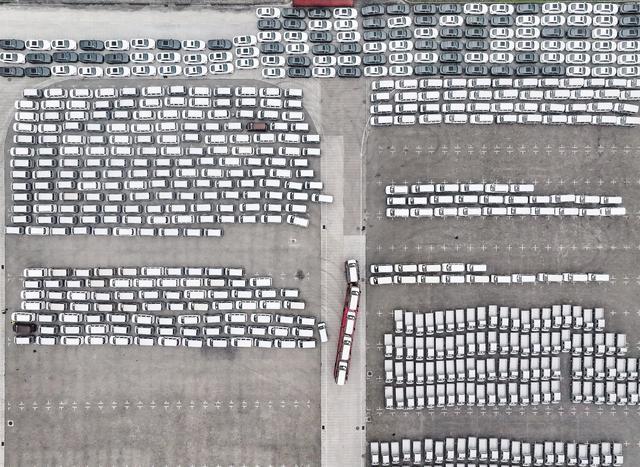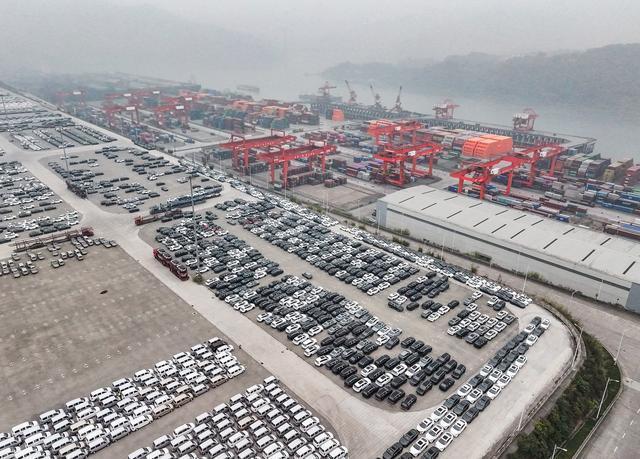 这是2025年1月2日在重庆果园港拍摄的准备装运的汽车(无人机照片)。新华社记者 王全超 摄