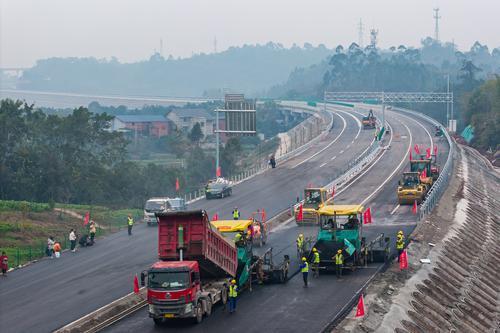 接下来,璧山段将进入路面附属和交安和机电安装工程,三个收费站混凝土模板施工,路面排水附属设施收尾阶段。