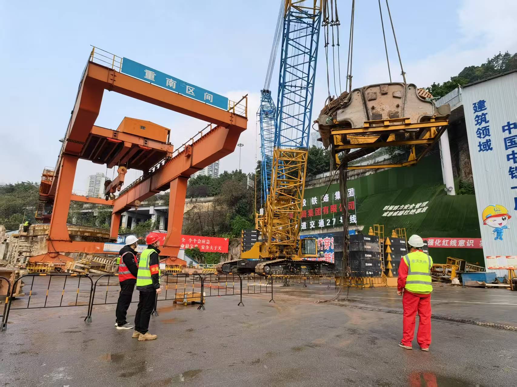 ▲27号线长江隧道施工现场,工人加紧组装盾构机。重庆交通开投铁路集团供图