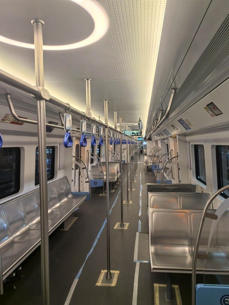 本次下线的6编组城轨快线车辆专为山城重庆地形量身打造,拥有50‰坡道爬坡能力,座椅采用横纵结合布置方式,最大载客量可达每列2400余人,也是重庆首列6编组城轨快线车辆。