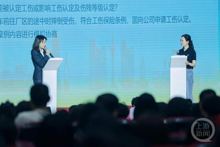 大赛设置“三轮闯关、全程积分”赛制,包含必答题、抢答题、案例实战三个环节,全面考验选手的法律素养、协调智慧与实战能力。案例实战环节,选手通过角色抽签,进行“企业员工—企业代表”角色对抗,还原工作中遇到的劳动关系矛盾案例,涉及劳动仲裁、劳动争议、劳动关系、劳动合同等多个方面,参赛选手们现场提出解决方案并进行协商,运用所学的劳动法律法规和政策,结合心理学知识和协商调解技巧,化解了一个又一个劳动争议纠纷。大赛还根据各参赛人员总体表现,评选出最佳人气奖2名以及最佳风采奖2名。