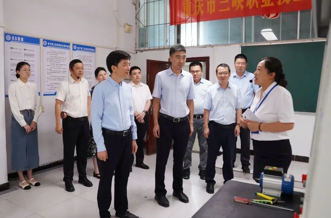 张国忠一行来到重庆市三峡职业技工学校、工业园区阿尔康公司,实地查看了学校的实训设施、教学场地,认真听取了相关负责人关于学校专业设置及迁建工作推进情况汇报。张国忠要求,要加快推进重庆市三峡职业技工学校迁建工作落地,立足实际,科学布局功能分区,更好满足学校办公教学各方面需求。要以“小县大城”试点为契机,充分盘活现有闲置资源,加强统筹布局,全力谋划建设集技能培训、生产加工、电商销售于一体的新市民就业创业产业园,持续扩大就业容量、提升就业质量。