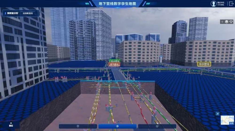 这是“数字管线”得以广泛应用的缩影。重庆市通过七个部门的密切配合,建立管线数据汇集机制,还出台《管线数字孪生数据规范》,规范管线材质、管径、压力等38类重要属性。全市已归集11.6万公里燃气、供水、排水、油气长输四类管线数据;其中,中心城区6.2万公里管线全部实现数字孪生。