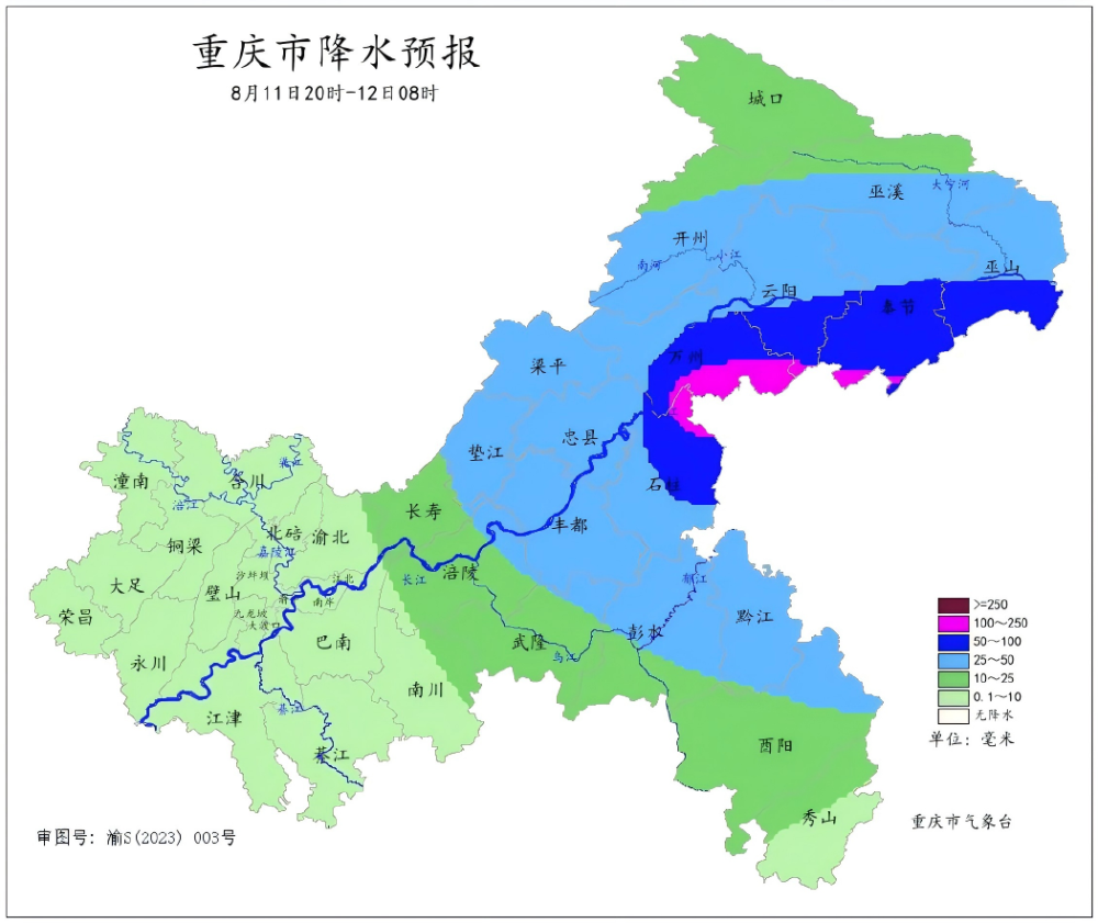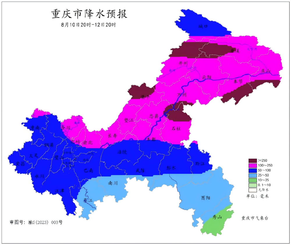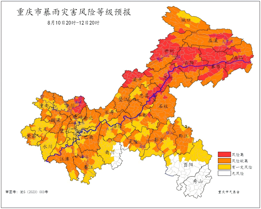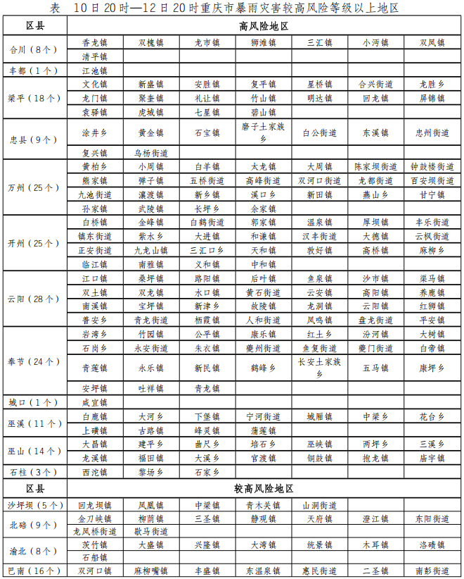 高风险区:合川、丰都、梁平、忠县、万州、开州、云阳、奉节、城口、巫溪、巫山、石柱