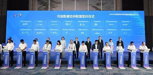 ▲9月5日,在2025可信数据空间高质量数据集生态大会现场,城市、汽车、医保、隆鑫可信数据空间联盟签约。 记者 罗斌 摄/视觉重庆
