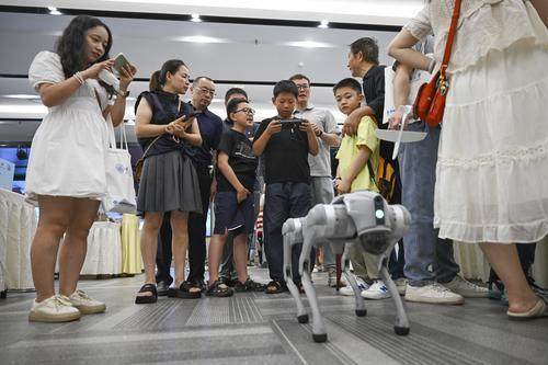 ▲2025年重庆市全国科普月主场活动现场,孩子们被机器狗吸引。记者 谢智强 摄