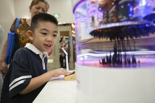 ▲2025年重庆市全国科普月主场活动现场,孩子体验反重力纳米磁流体。记者 谢智强 摄