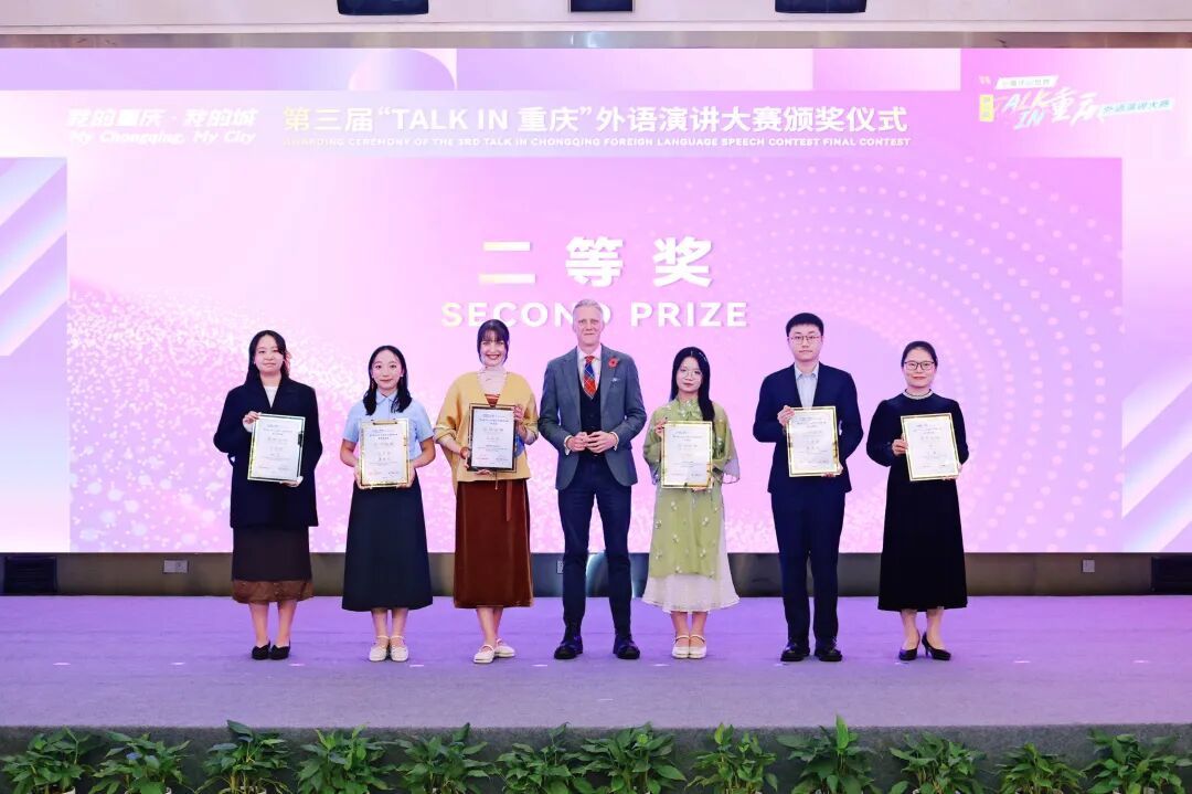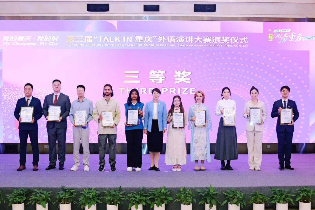 用外语讲述重庆,让故事跨越山海。11月9日,由重庆市人民政府外事办公室、重庆市人民对外友好协会主办的@重庆@世界·第三届“TALK IN 重庆”外语演讲大赛决赛在市外事大楼成功举行。围绕“我的重庆·我的城”主题,27名中外优秀选手同台竞技,以语言为桥,生动讲述巴山渝水间的开放活力和蓬勃生机。经过激烈角逐,来自西南大学的学生贺郅婷、重庆医科大学附属第一医院的医生沈楠、重庆巴蜀中学国际教育中心的教师乔治(GIORGIO PALMIERO)分获中国籍英文高校组、职业组及外籍中文组一等奖。