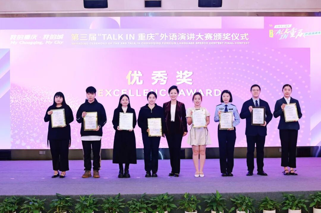 颁奖仪式上,市政府外办主任王雯向获奖选手表示祝贺并充分肯定大赛成果。她指出,“TALK IN 重庆”历经三届深耕,已成为重庆发掘外语人才、储备开放力量的重要窗口。三年来,比赛与选手共同成长,参赛领域越发多元,话题日益深入。历届选手中,有人将热爱发展为职业,成为外事工作一线的伙伴;有人站上国家级外事活动舞台;更多人将国际语言与开放精神融入城市每个细胞,构成重庆对外开放的中坚力量。她勉励选手们以比赛为起点,永葆对语言的热爱、对世界的好奇和对事业的执着,持续书写精彩“重庆故事”,欢迎优秀人才加入全市翻译人才库,在重庆对外开放的火热实践中实现自我价值。