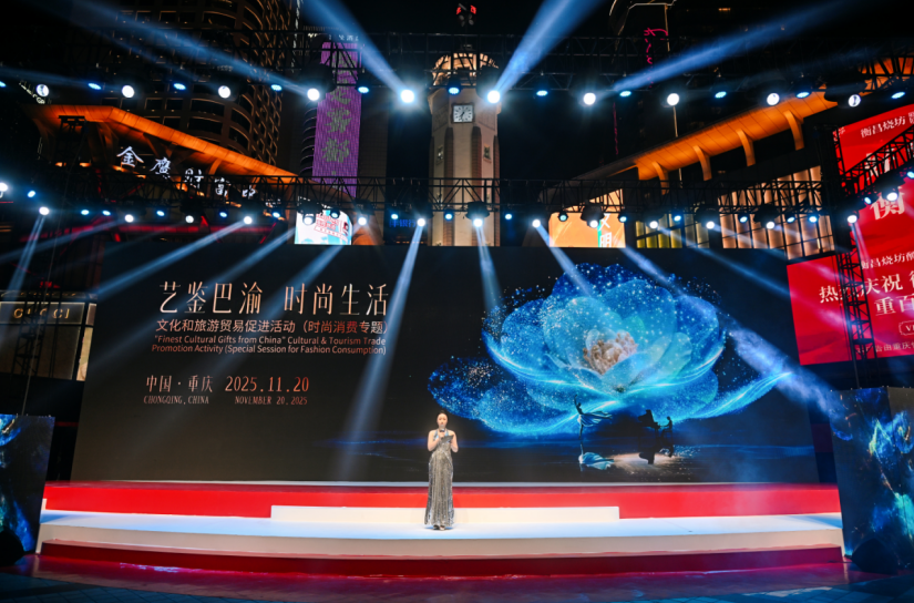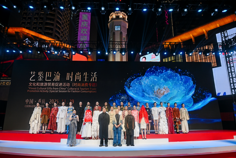 11月20日晚,“多彩中国 佳节好物”文化和旅游贸易促进活动(时尚消费专题)的系列活动“艺鉴巴渝 时尚生活”时尚首秀,在渝中区解放碑CBD精彩上演,以非遗技艺与当代设计的碰撞,为市民游客呈现了一场兼具视觉冲击与文化深度的美学盛宴。