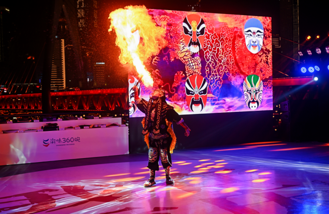 现场,有中医非遗技艺体验,好看的剧目片断和川剧变脸、乐队演唱,还有热气腾腾的火锅、小龙虾等你来吃……五大场景亮点交织,构建出一场集视觉、听觉、味觉、触觉于一体的文旅盛宴,将“夜重庆”的好看、好玩、好吃尽数囊括。