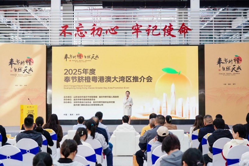 12月17日,由奉节县人民政府主办的“2025年度奉节脐橙粤港澳大湾区推介会”在深圳海吉星农批市场举行。本次活动以“奉节脐橙·自然天成”为主题,聚焦产销精准对接,推动三峡库区优质农产品深度融入粤港澳大湾区高端消费市场,为构建高效、稳定、共赢的“甜蜜产业链”注入强劲动能。