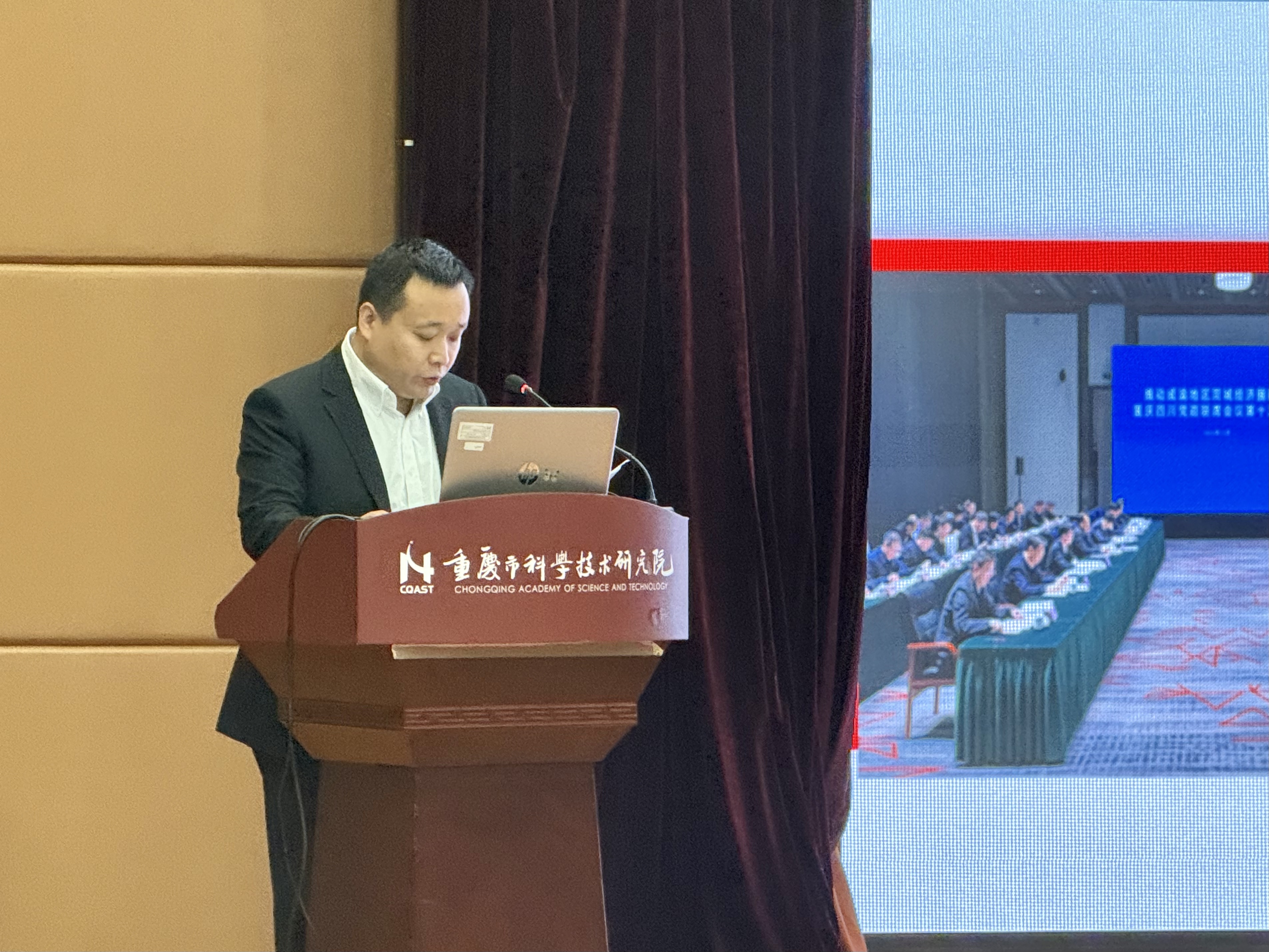 ▲重庆科技发展战略研究院副总经理、副研究员赵德发布《成渝指数》。首席记者 张亦筑 实习生 许童叶 摄
