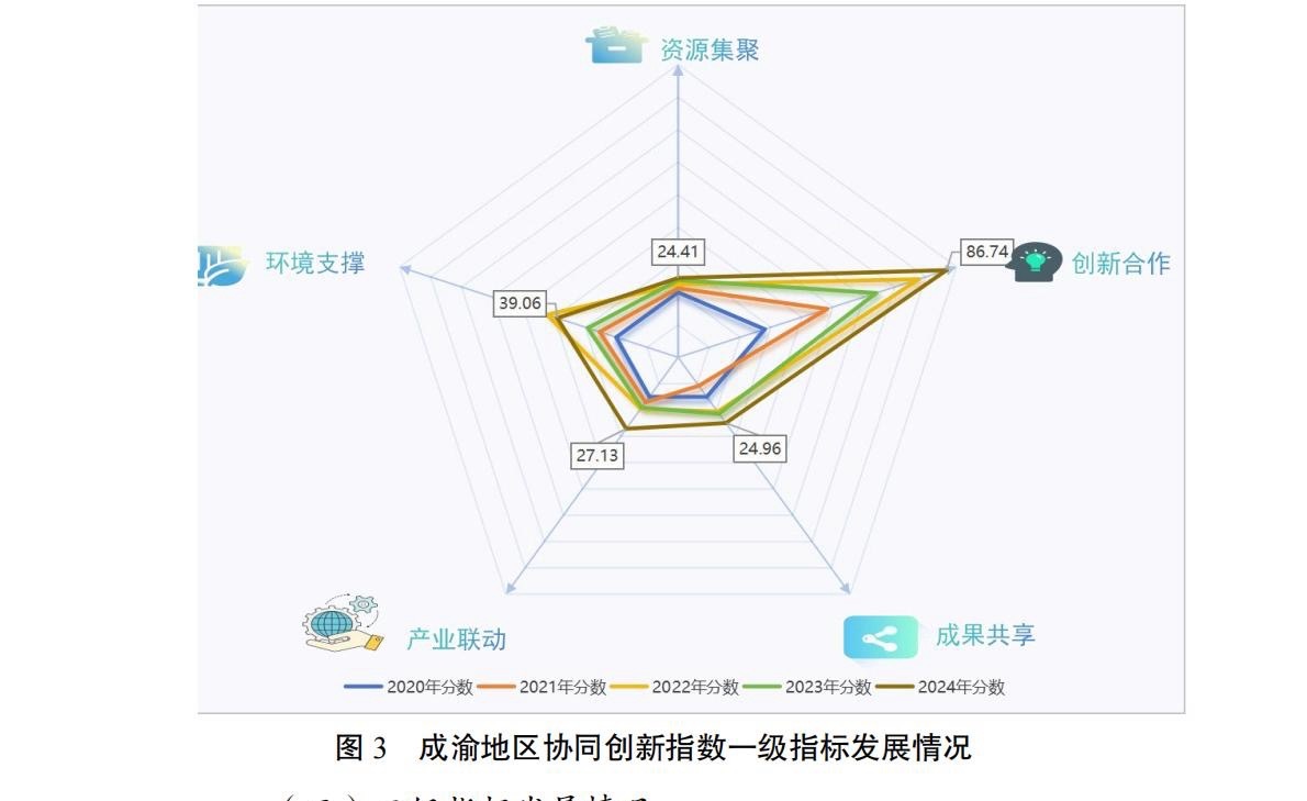 报告显示,近年来,成渝地区协同创新水平呈现稳步提升态势,5项一级指标都取得了新进展,为建成具有全国影响力的科技创新中心打下了坚实基础。