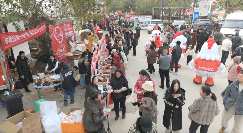 这场始于一句承诺的相聚,汇聚了无数陌生人的善意,让全国上千位网友从线上关注变为线下奔赴,热度持续蔓延。在“呆呆”家刨猪宴结束后,合川文旅也在多处延续这份热情,招待远道而来的朋友们。1月13日,在活动地点之一(合川龙市镇友军生态园),一场特别的“加菜”正在发生:重庆本土卤味品牌麻爪爪在现场设点,向公众免费分发卤味产品。