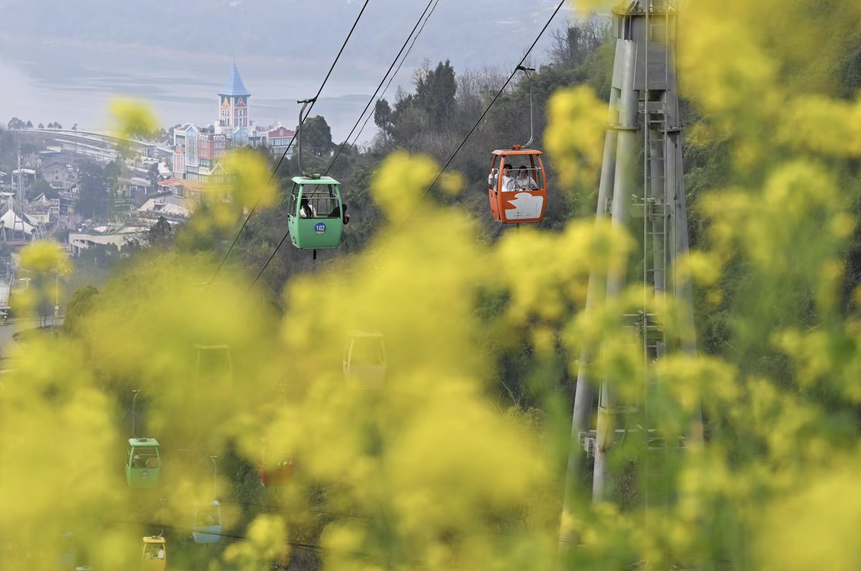当下,春节客流已逐步回落,气温稳步回升,美心红酒小镇的春日景致正进入最佳观赏期,错峰游黄金期的开启,让游客得以告别拥挤,从容赏春。不同于传统踏春模式,小镇依托7条风格各异、特色鲜明的索道线路,将春日盛景与高空体验深度融合,打造专属“索道瞰春”特色玩法,每条线路都有独特体验,让每一位游客都能以独特视角拥抱巴渝春色,沉浸式感受“坐着索道上春山”的诗意与浪漫。