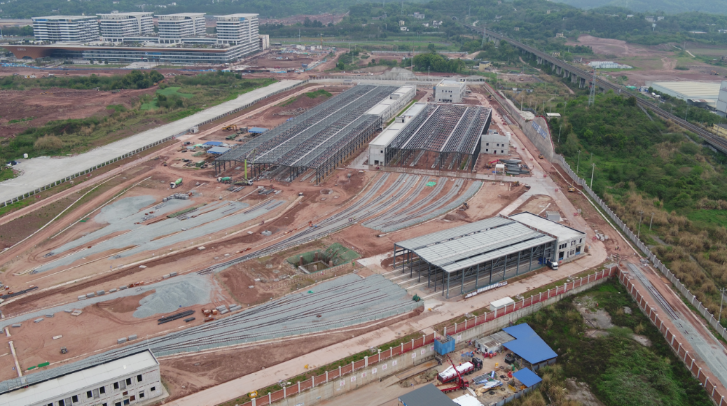 距离27号线石桥铺站约25公里远的轨道交通17号线曾凤路车辆段,运用库、检修库、综合维修楼等16个建筑单体已拔地而起。
