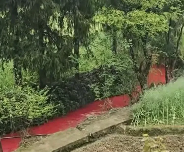 据微信公众号“长安街知事”报道,近日,重庆彭水苗族土家族自治县市民拍摄的一则短视频引起关注,视频画面显示,位于彭水县的鞍子镇干田村的河道里流着鲜红色的水。